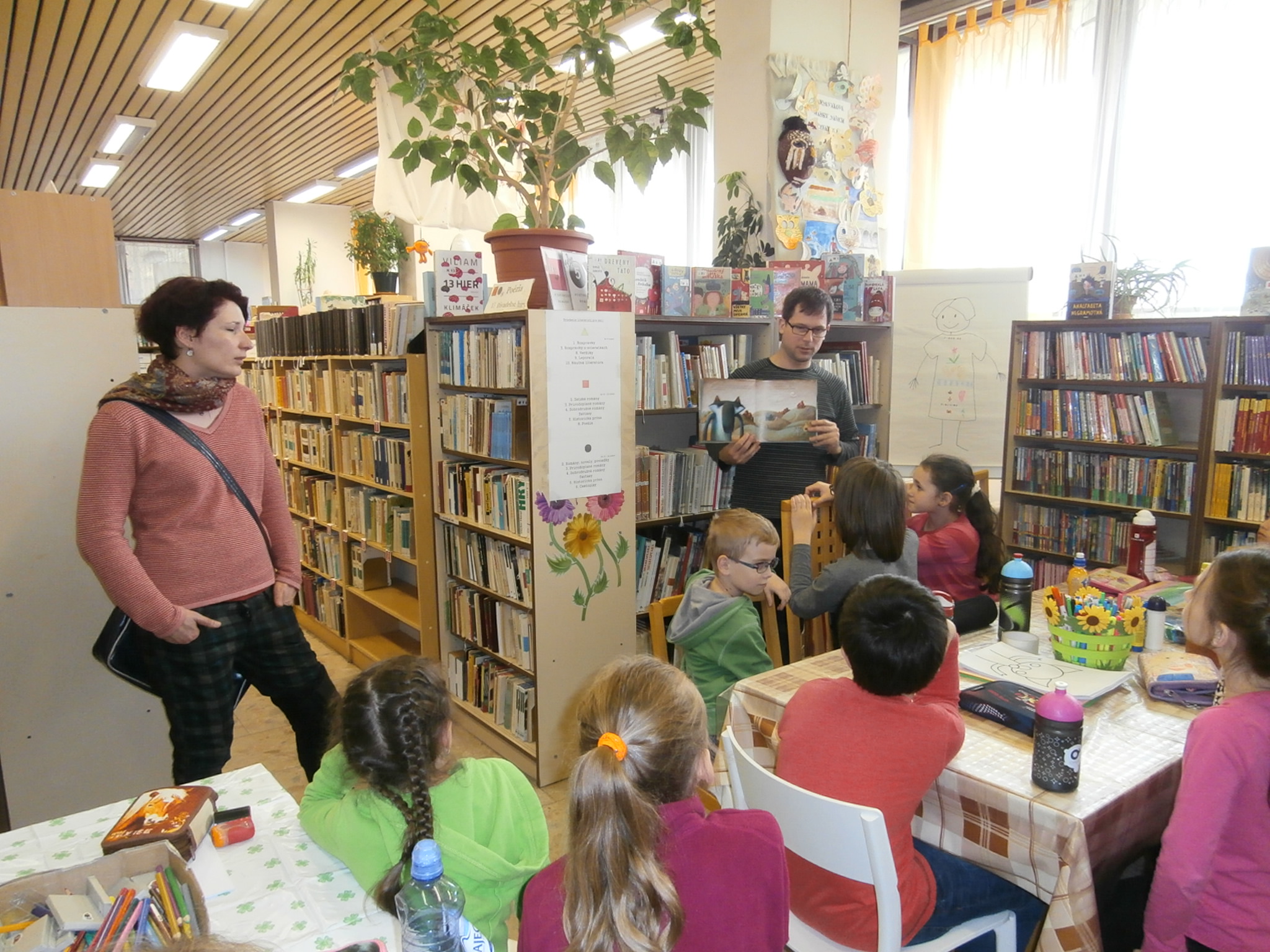 obr. 10 – 13 Stretnutie žiakov ŠKD Prokofievova 5 a ilustrátorky Márie Nerádovej.
