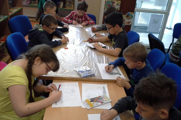 obr. 37 – 41 Workshop ilustrátorov Martiny Matlovičovej Královej a Vladimíra Krála so žiakmi Základnej školy Černyševského 8.