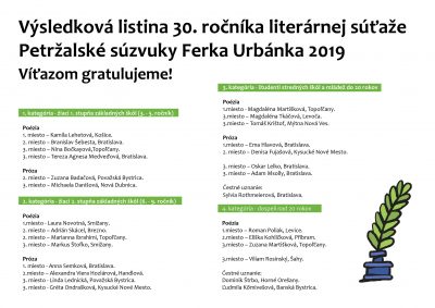 Radi by sme sa podelili s literárnymi príspevkami, ktoré zvíťazili v 30. ročníku súťaže Petržalské súzvuky Ferka Urbánka. V tomto…