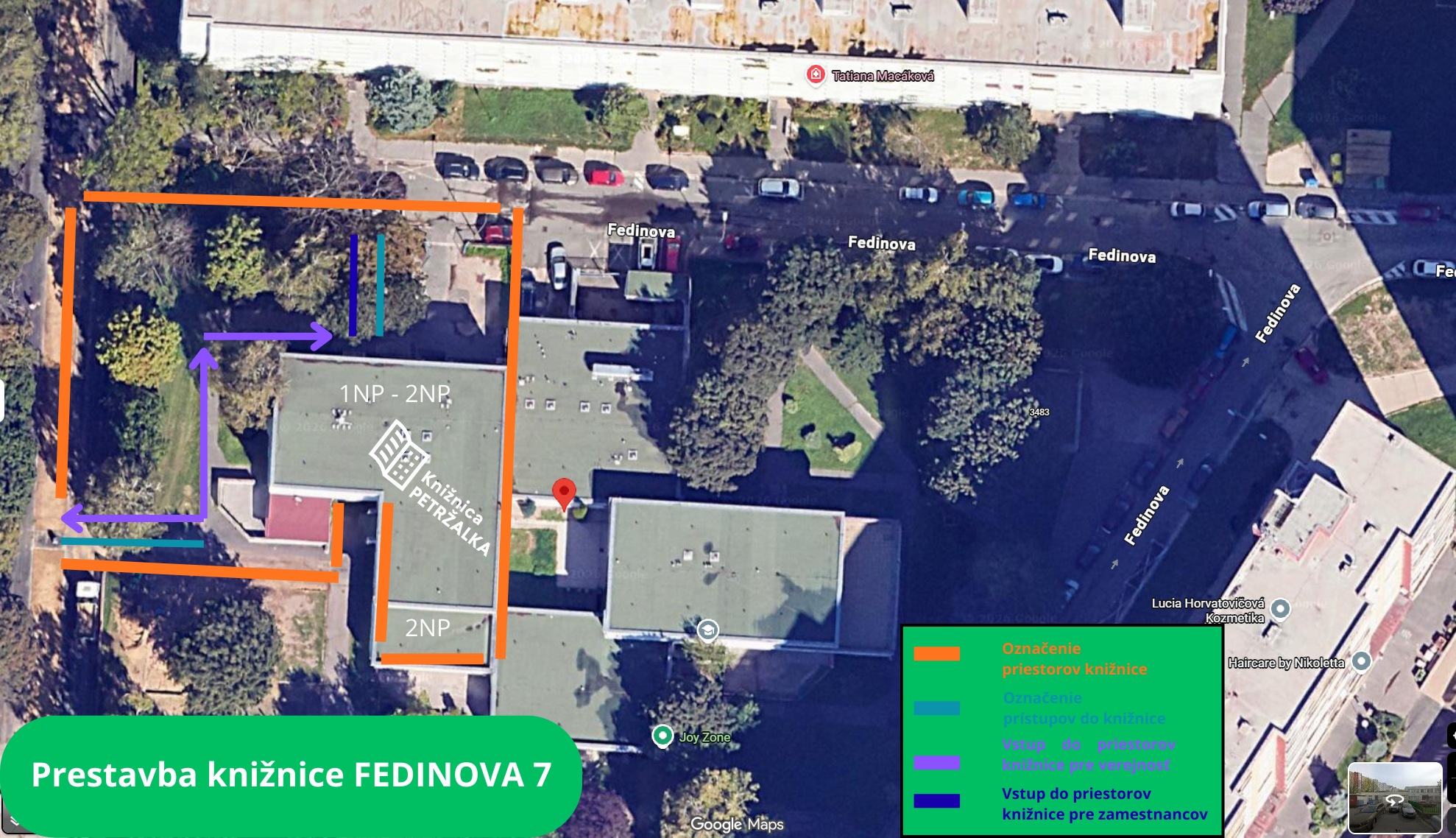 Vážení čitatelia a susedia, informujeme vás, že priestory na Fedinovej 7 prechádzajú od 19. 01. 2026 plánovanou rekonštrukciou. Stavebné práce potrvajú približne do mája 2026. Ospravedlňujeme sa za dočasný hluk a prašnosť v okolí budovy a ďakujeme za vašu trpezlivosť. Tešíme sa na vás v novom už v lete!