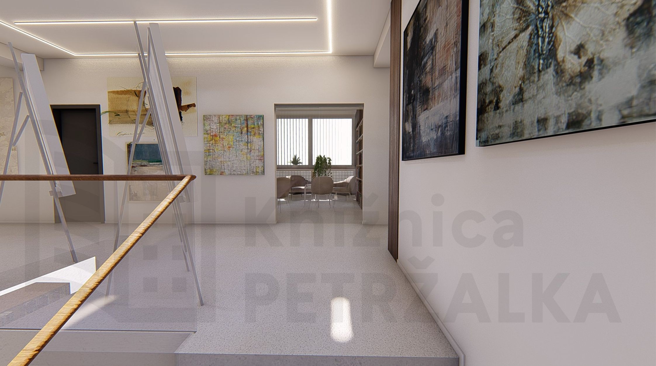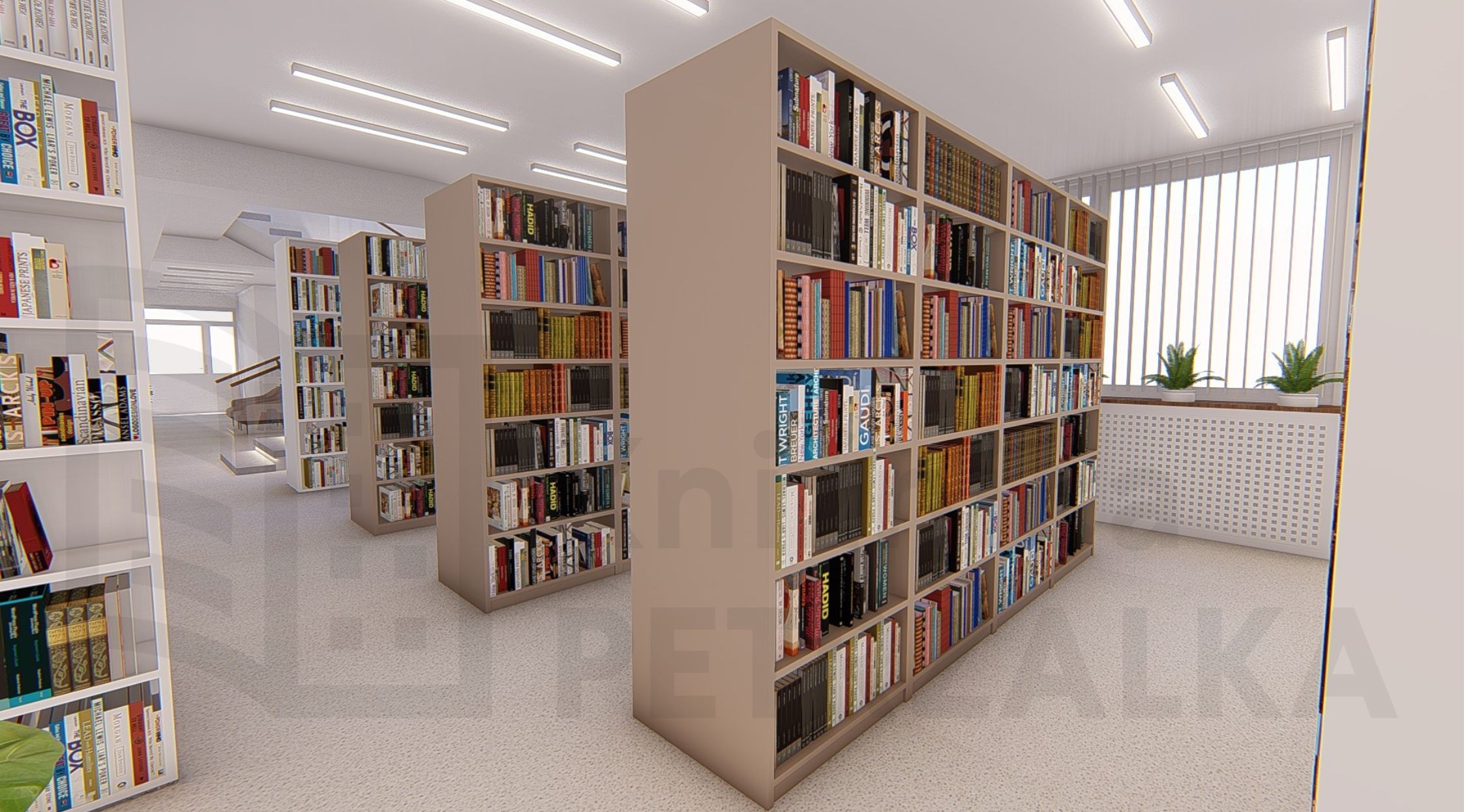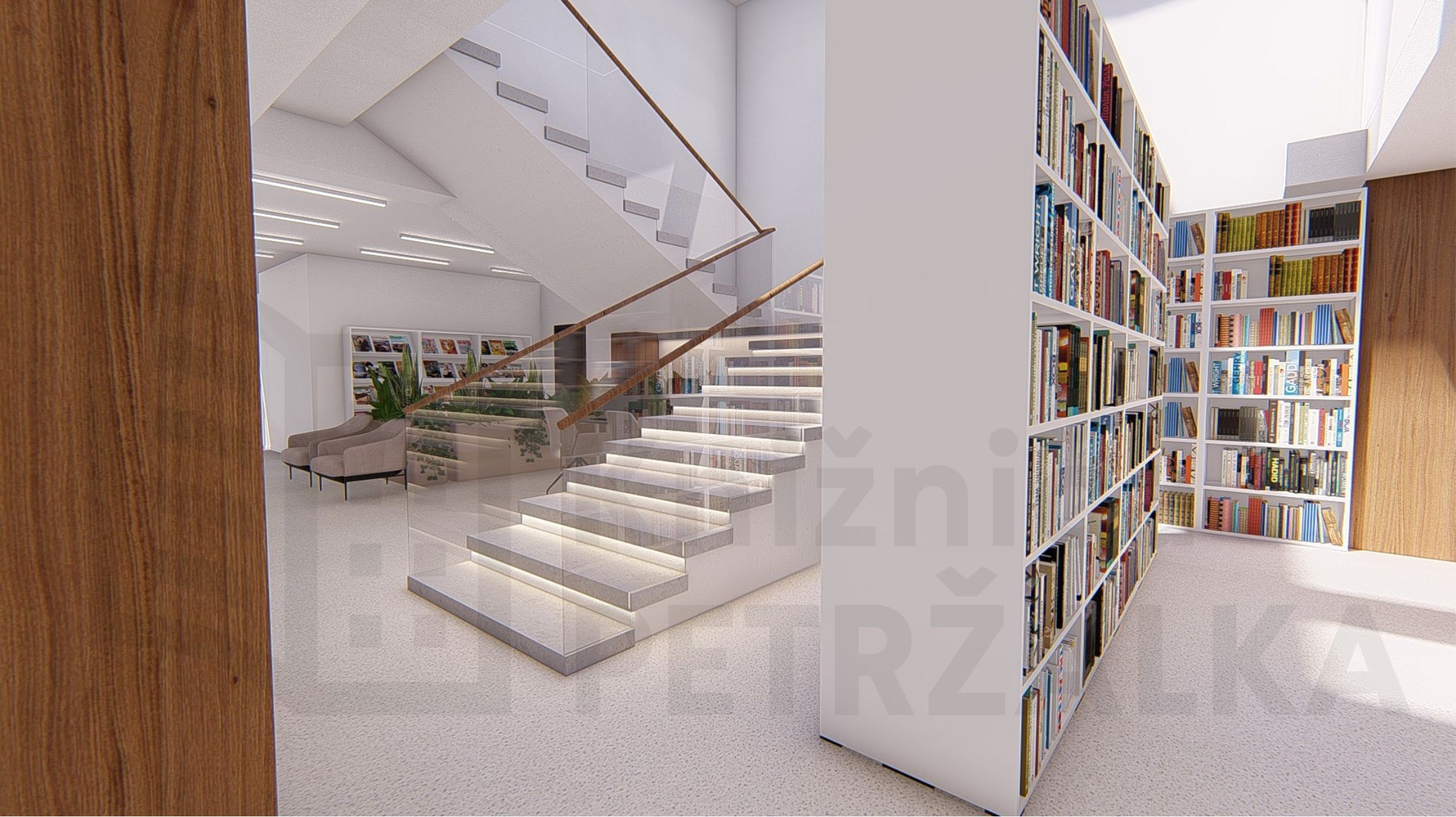 Vizualizácia priestorového riešenia 1NP a 2NP – štúdio MARDIZ / autor Ideového zámeru a vizualizácie modernizácie a priestorového riešenia knižnice Fedinova, 2024