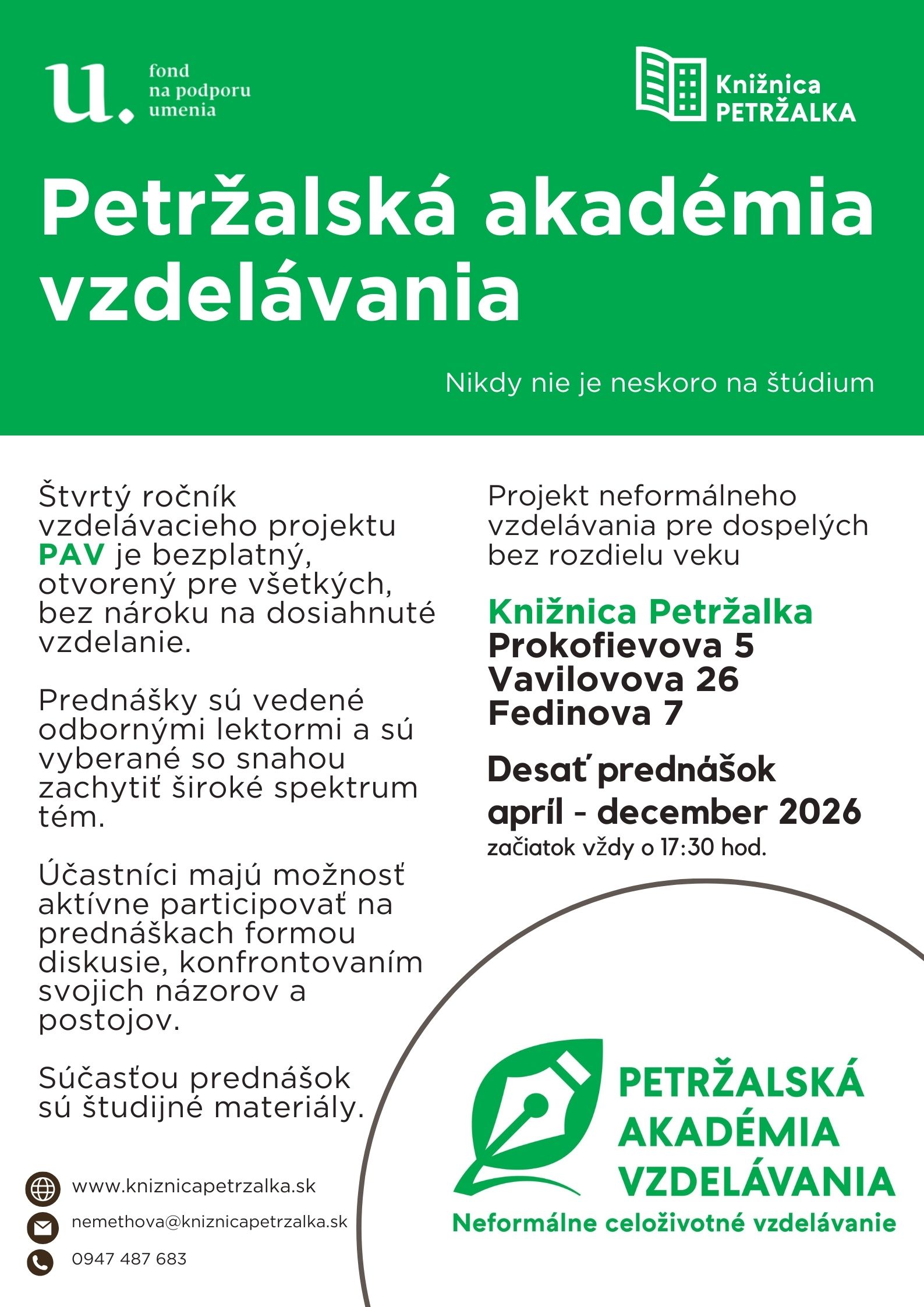 Pozývame vás na prvú prednášku 4. ročníka vzdelávacieho projektu Petržalská akadémia vzdelávania (PAV). PAV je vzdelávací projekt petržalskej knižnic...