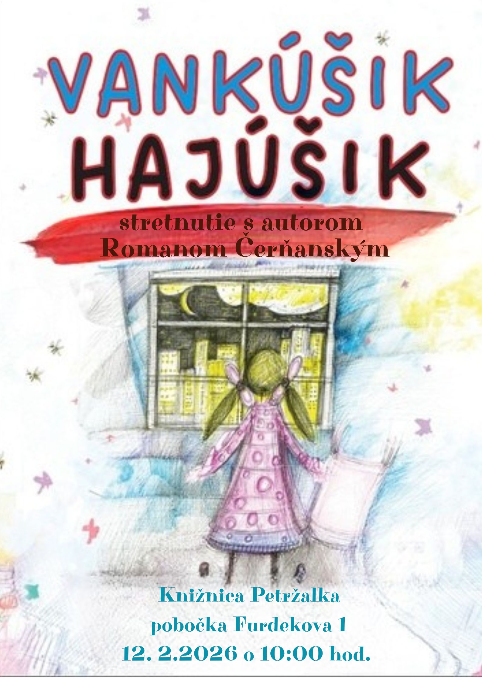 Pobočka Furdekova 1 Pre deti furdekova@kniznicapetrzalka.sk | +421 947 487 718Deti budú mať možnosť stretnúť a zahrať sa s autorom novej detskej knihy – Vankúšik Hajúšik – rozprávka plná dobrodružstva, odvahy a fantázie.