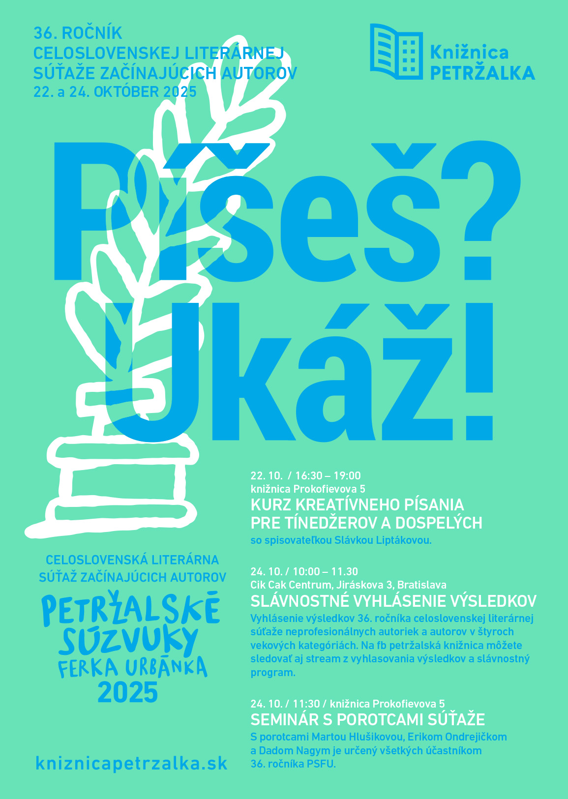 Pobočka Prokofievova 5 prokofievova@kniznicapetrzalka.sk | +421 947 487 712Vyhlásenie výsledkov 36. ročníka Petržalských súzvukov Ferka Urbánka sa nezadržateľne blíži.