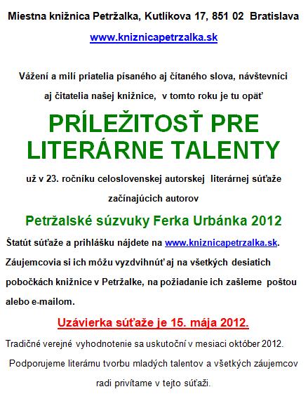 Prinášame Vám históriu literárnej súťaže Petržalské súzvuky Ferka Urbánka.